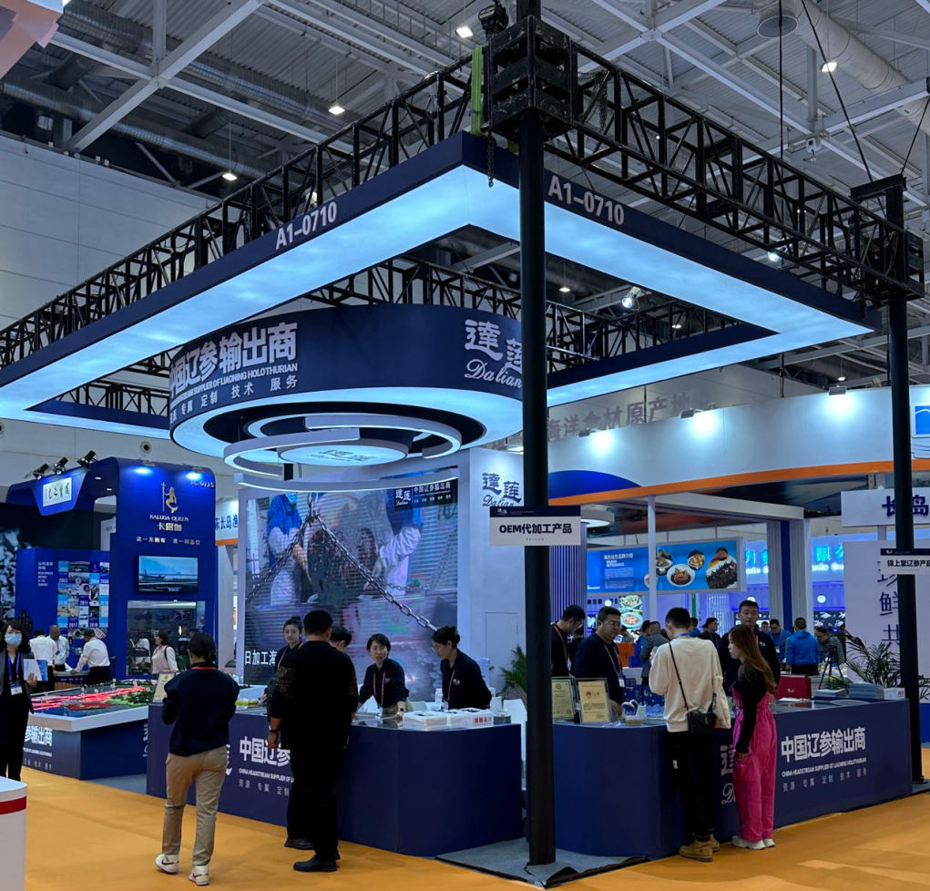 此次展會上,達蓮公司推出產品涵蓋了遼參原料系列:鹽漬遼參、凍煮料;即食遼參系列涵蓋了速凍即食遼參、高壓即食遼參、美味高壓即食遼參、黃金卵即食遼參;淡干遼參;新產品整半拉-入味遼參等產品。